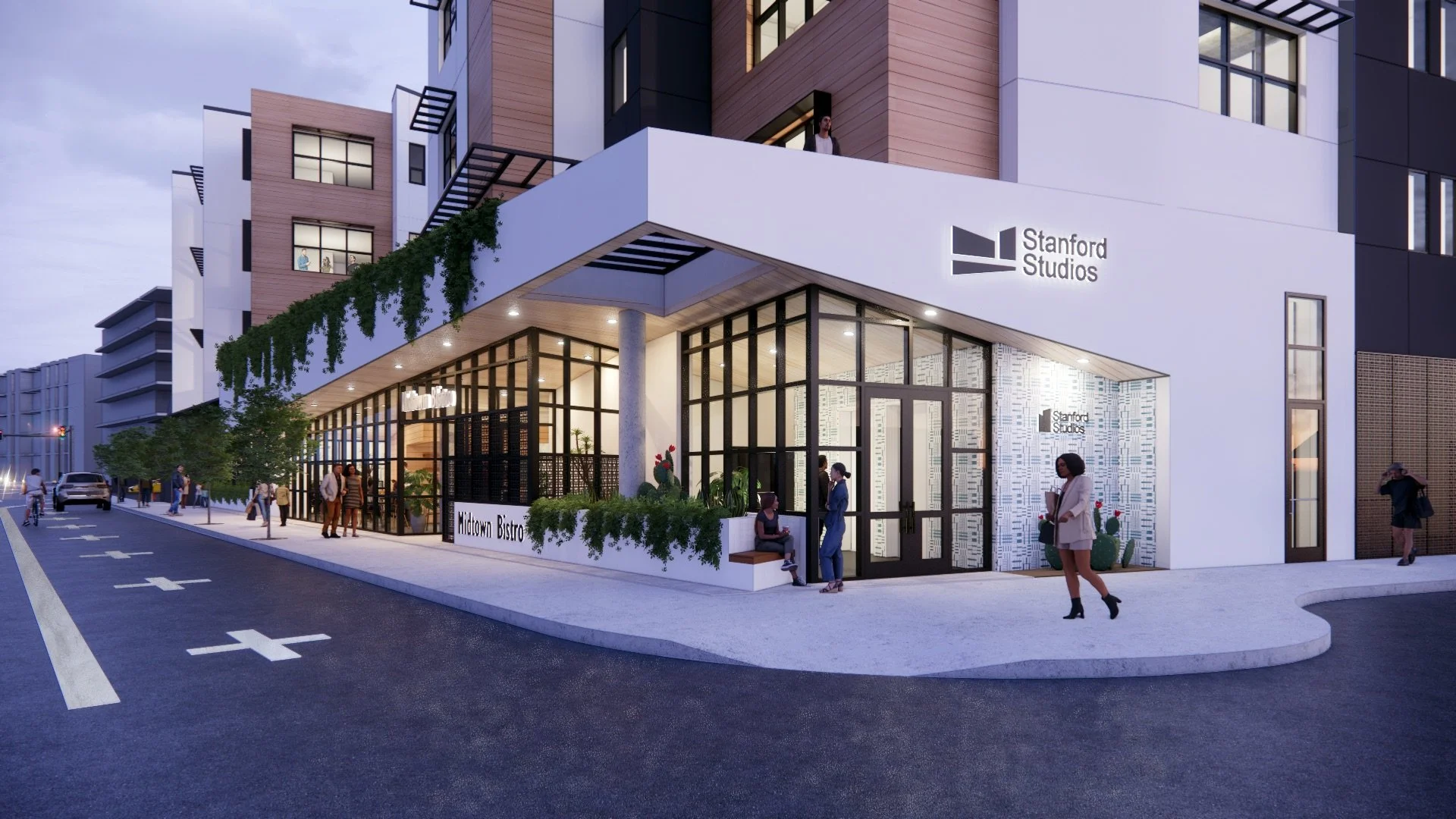 The Stanford Studios project proposes housing that is affordable by design and utilizes prefabricated modular construction techniques in a way that maximizes building articulation and creates a distinct building identity that reflects the character of the Midtown neighborhood of Santa Cruz. This project aims to provide attainable housing for individuals who plan to adopt a car-free lifestyle in a centralized location well served by public transportation and bicycle infrastructure.